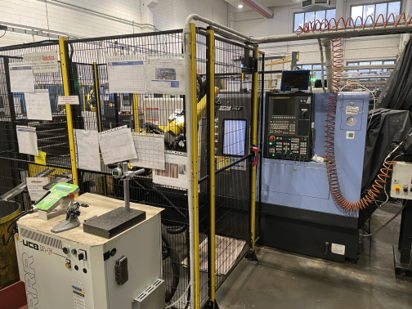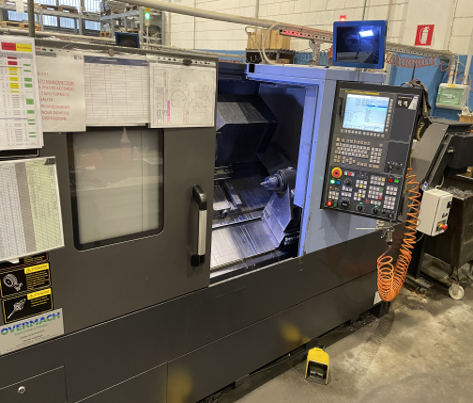 con utensili motorizzati e doppio autocentrante contrapposto, diam. tornibile 200, lunghezza 500 con atropomorfo ATOM 10 e lunghezza braccio mt. 1,5 per carico e scarico pezzi