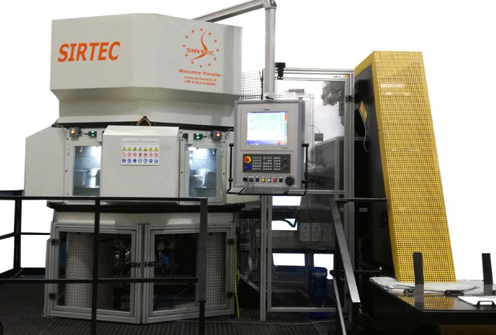 a 8 stazioni per tornitura, foratura e maschiatura, adatto a grandi produzioni in serie, con carico e scarico automatico